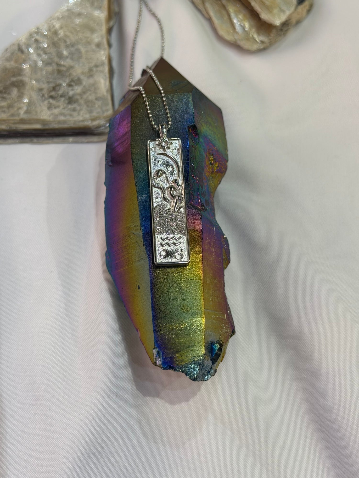 Aquarius Zodiac Amulet Necklace Silver Waterproof Stainless Stee