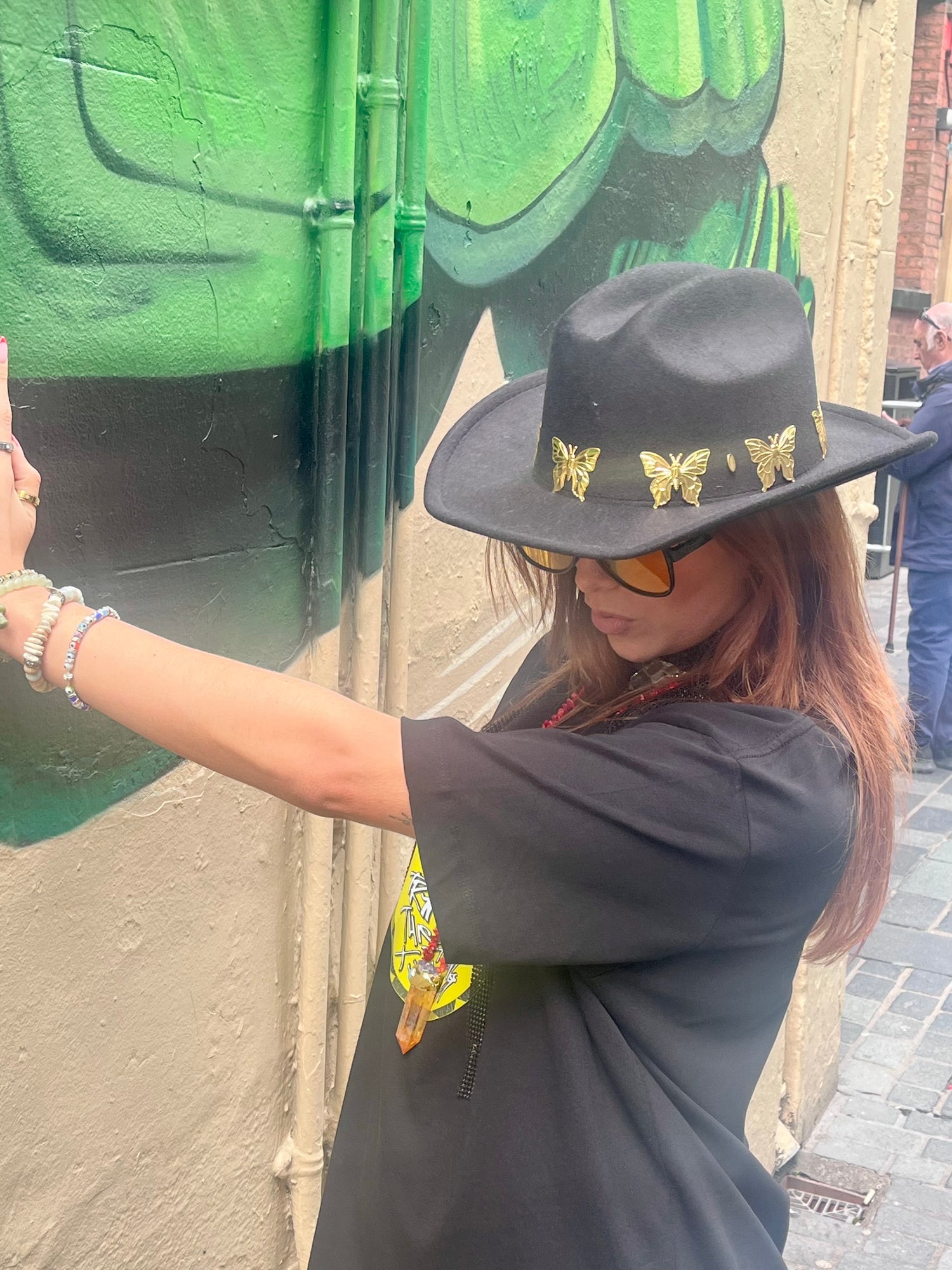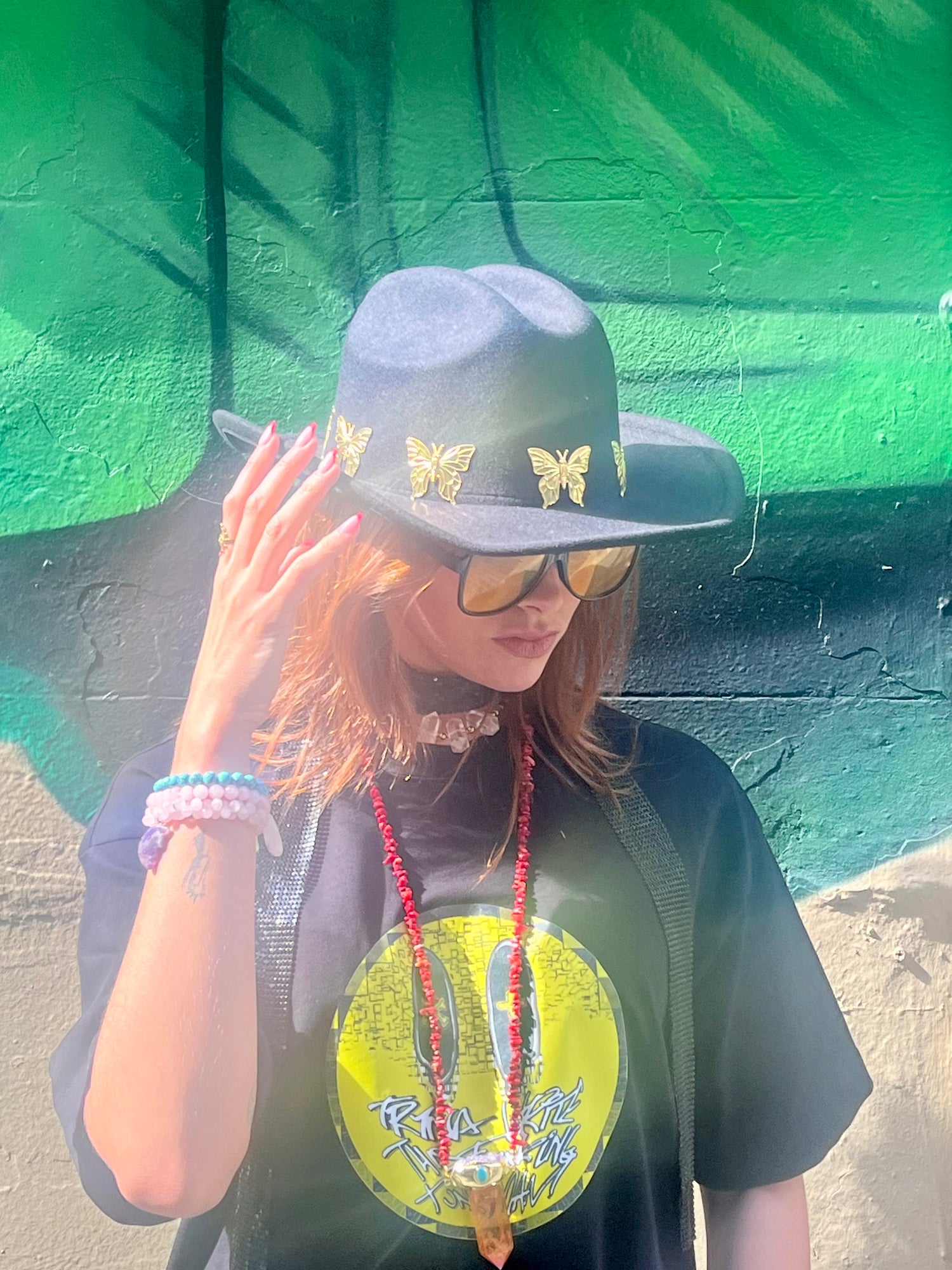 Black Cowboy Hat – with Butterfly Charms (Adjustable)