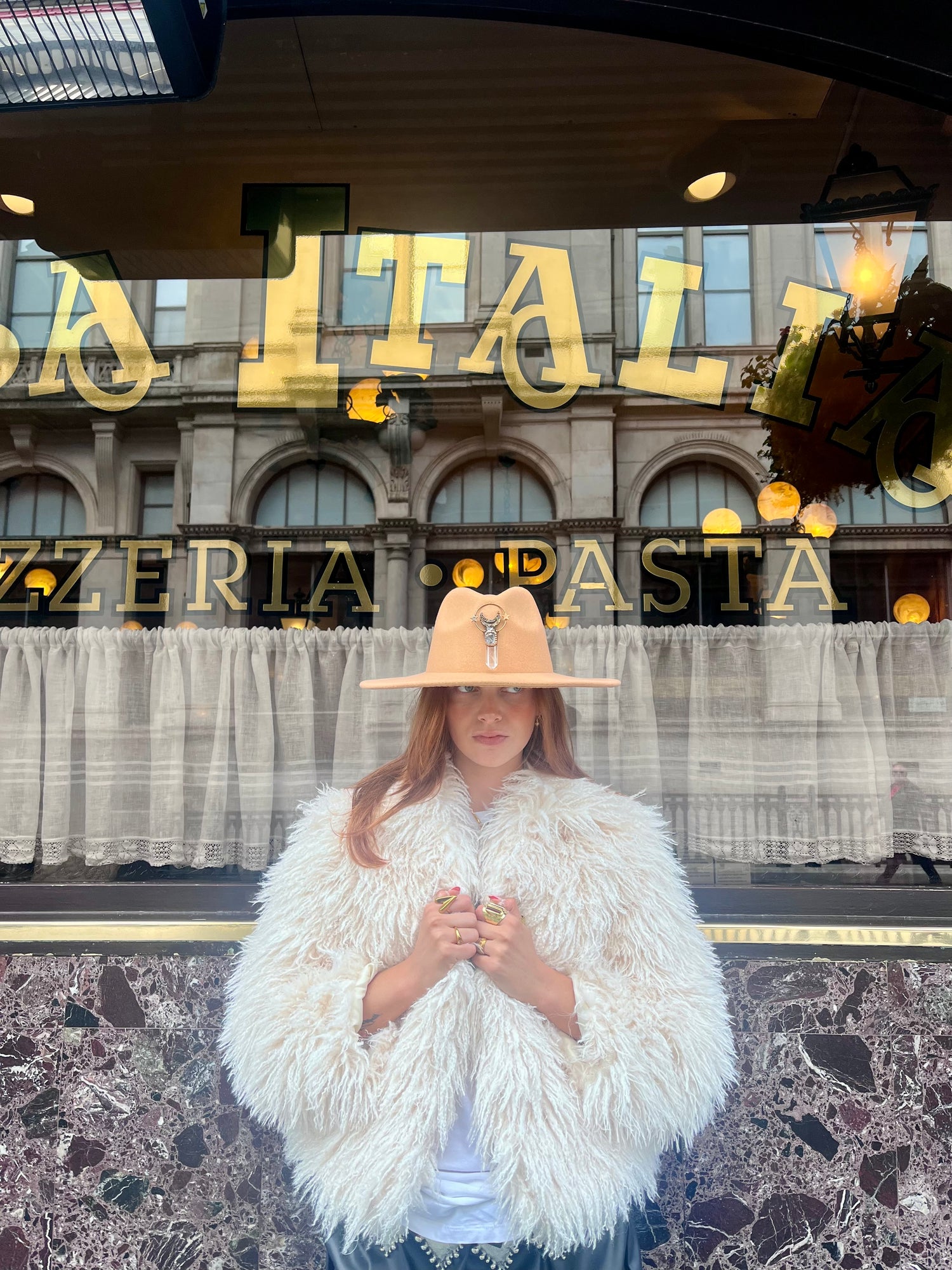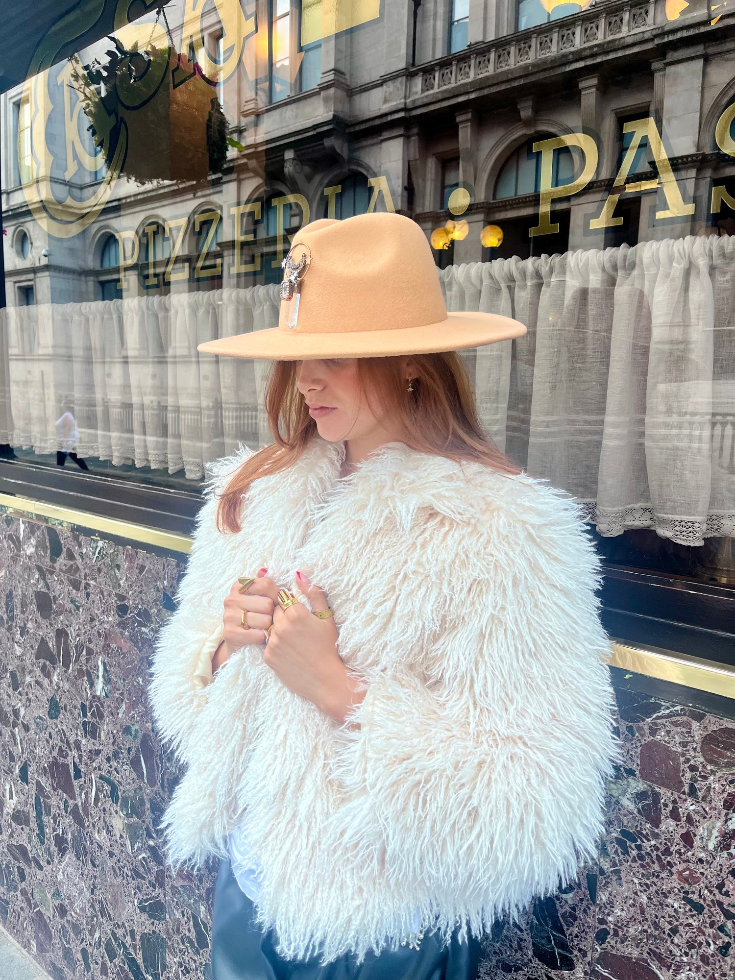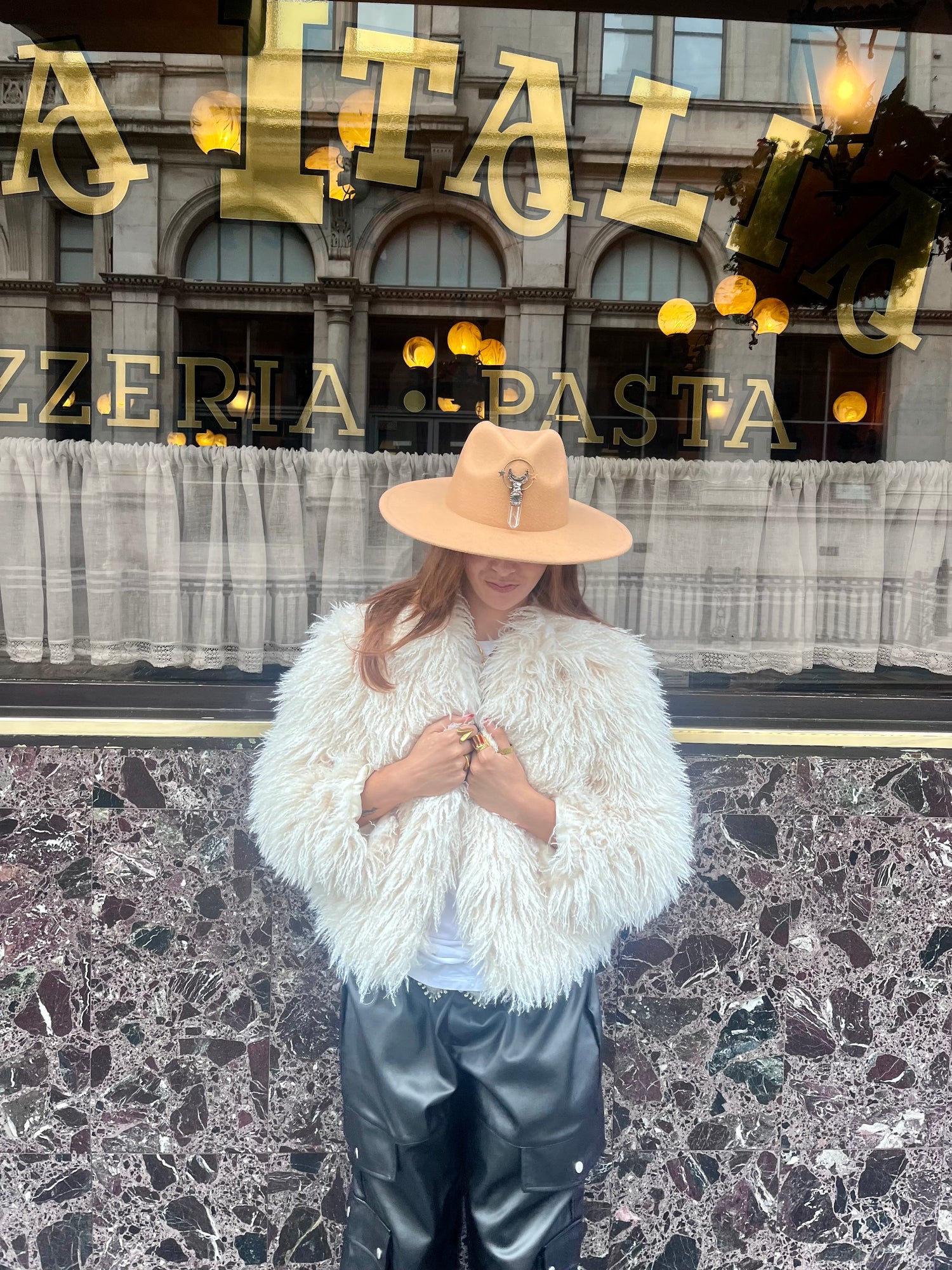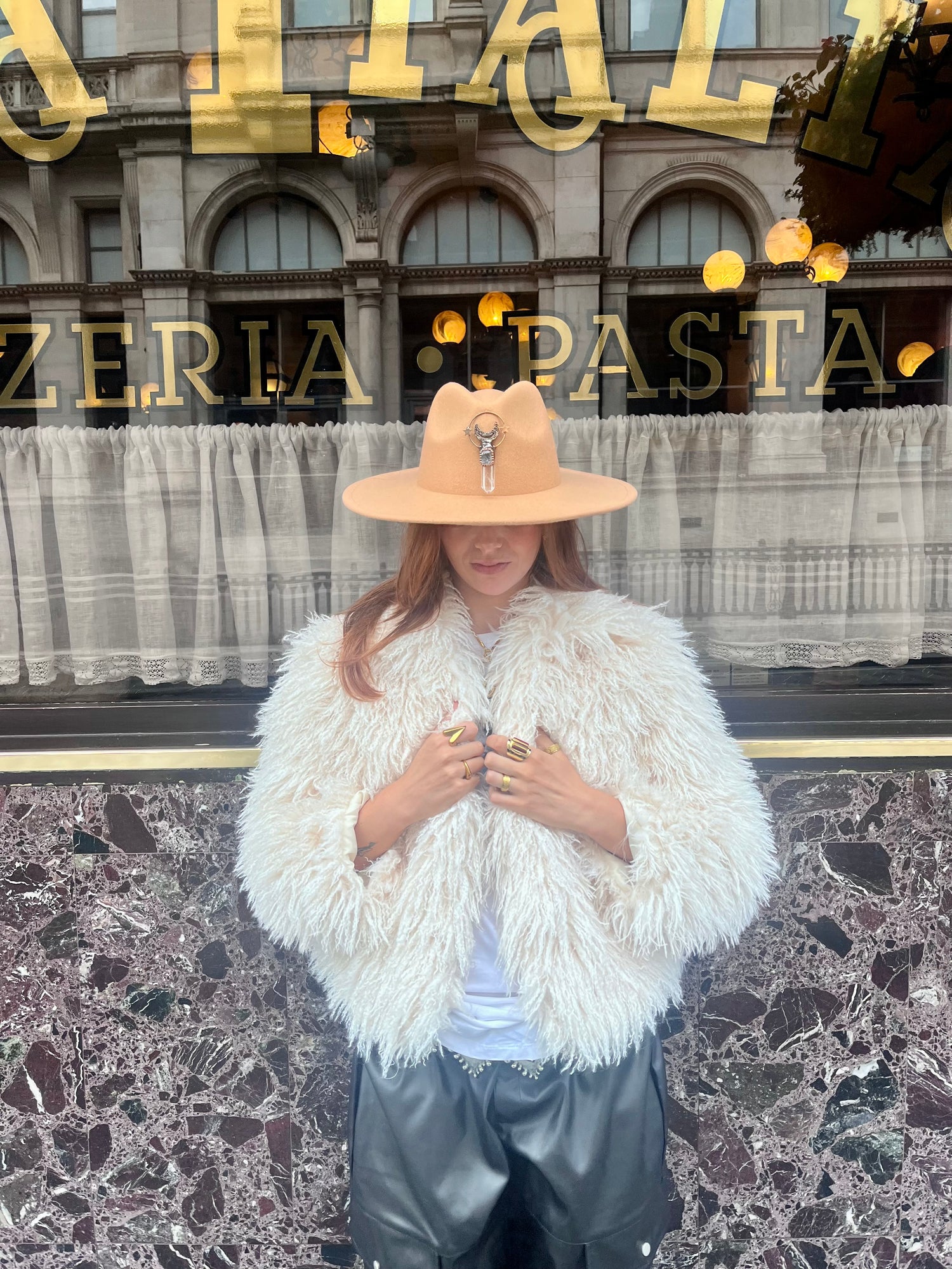 Arcana Amulet Hat – Beige Quartz Moon & Star Charm (Adjustable