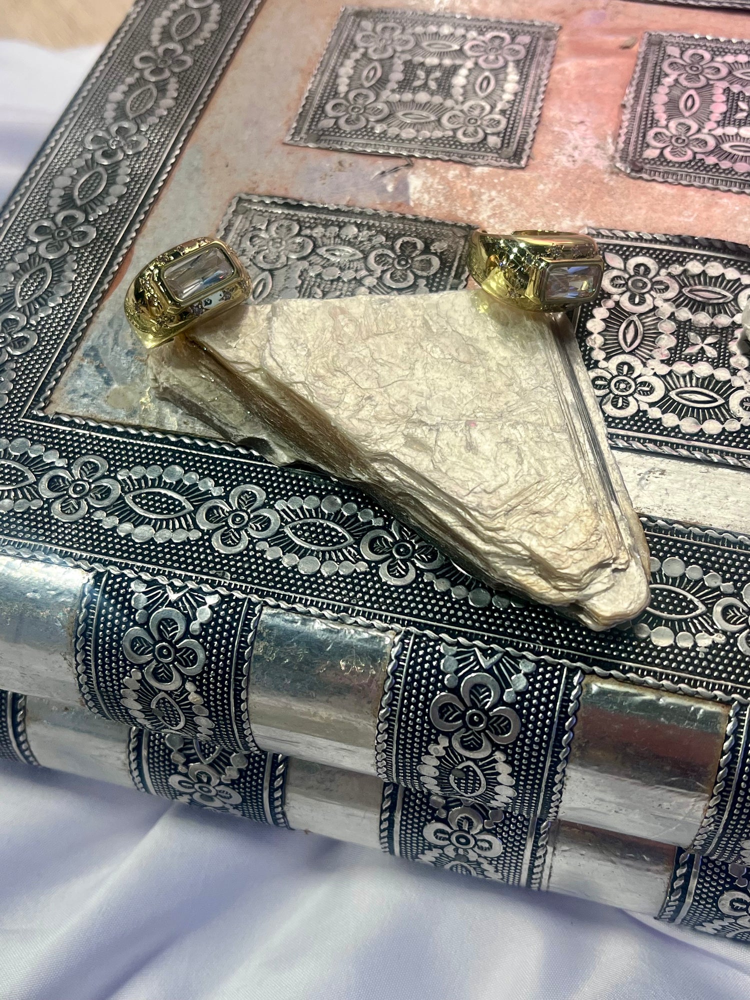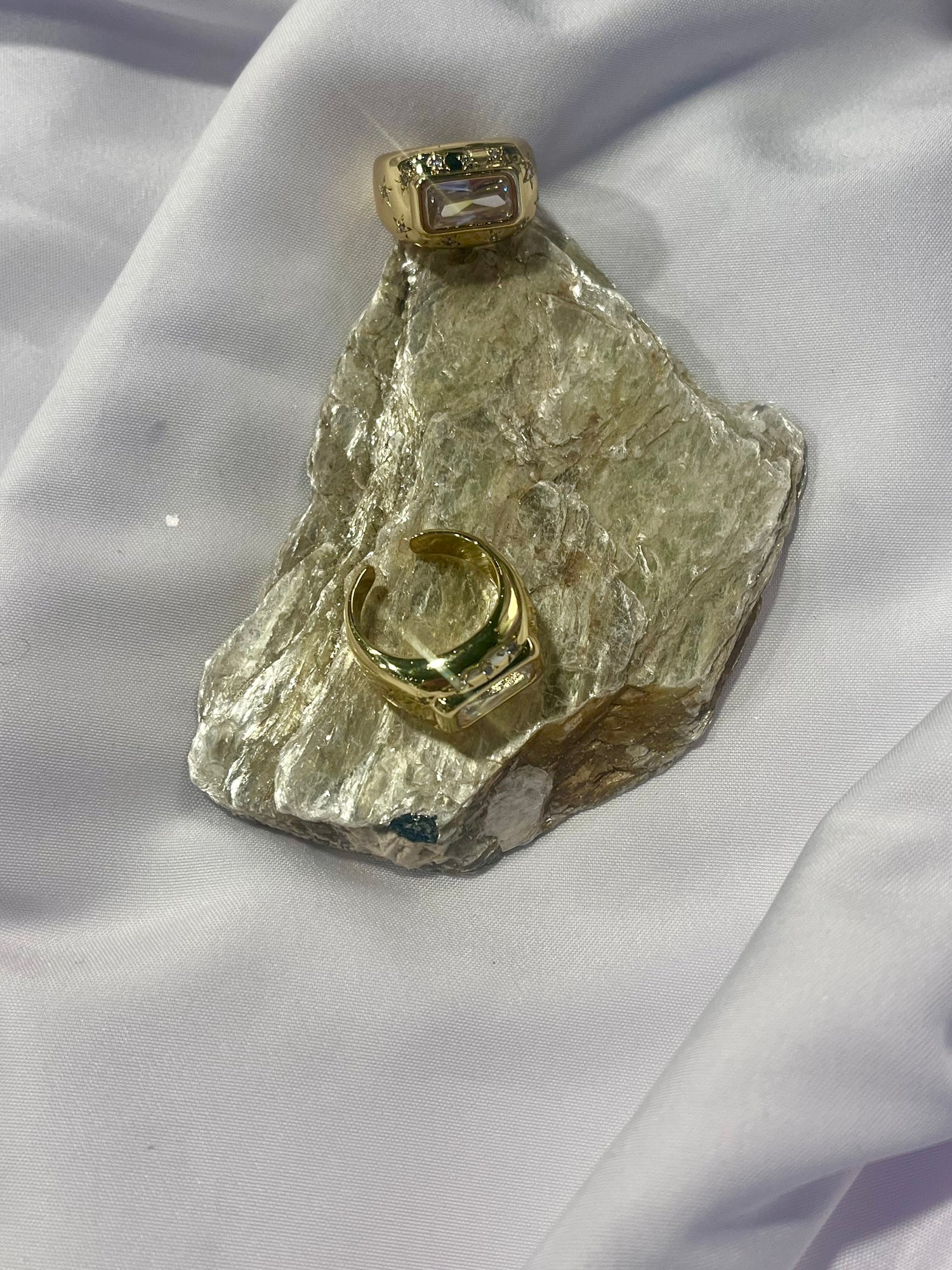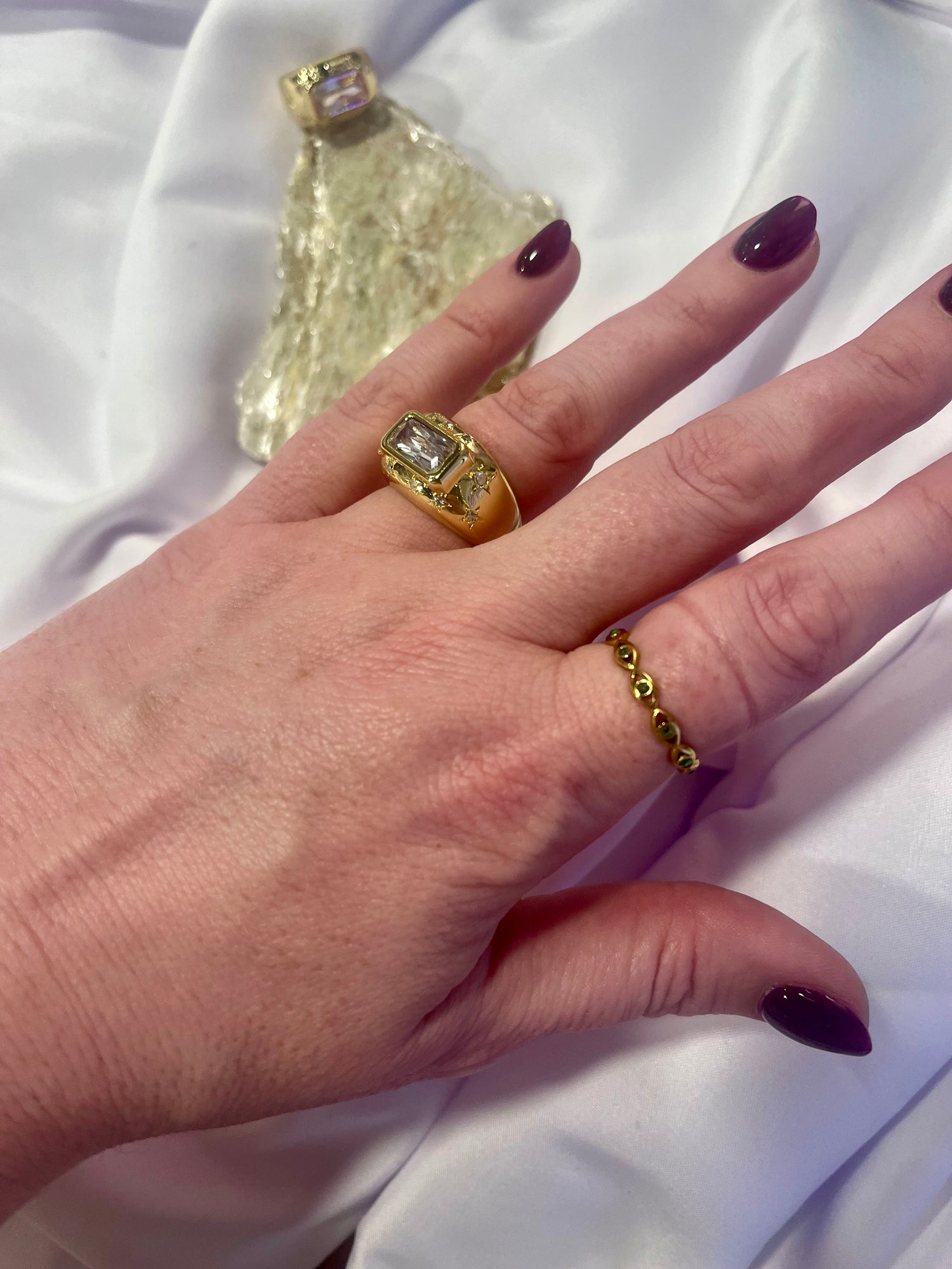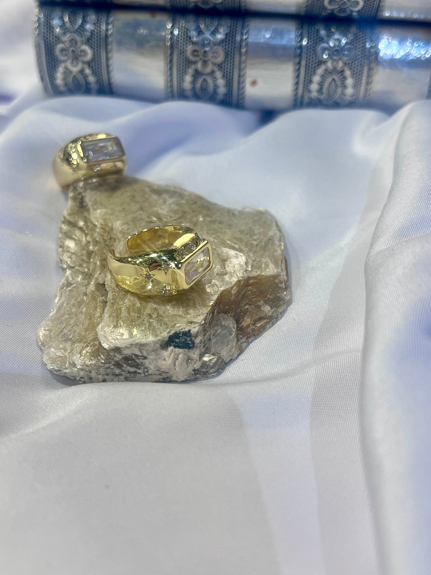 Celestial Rectangle CZ Ring – Gold Waterproof