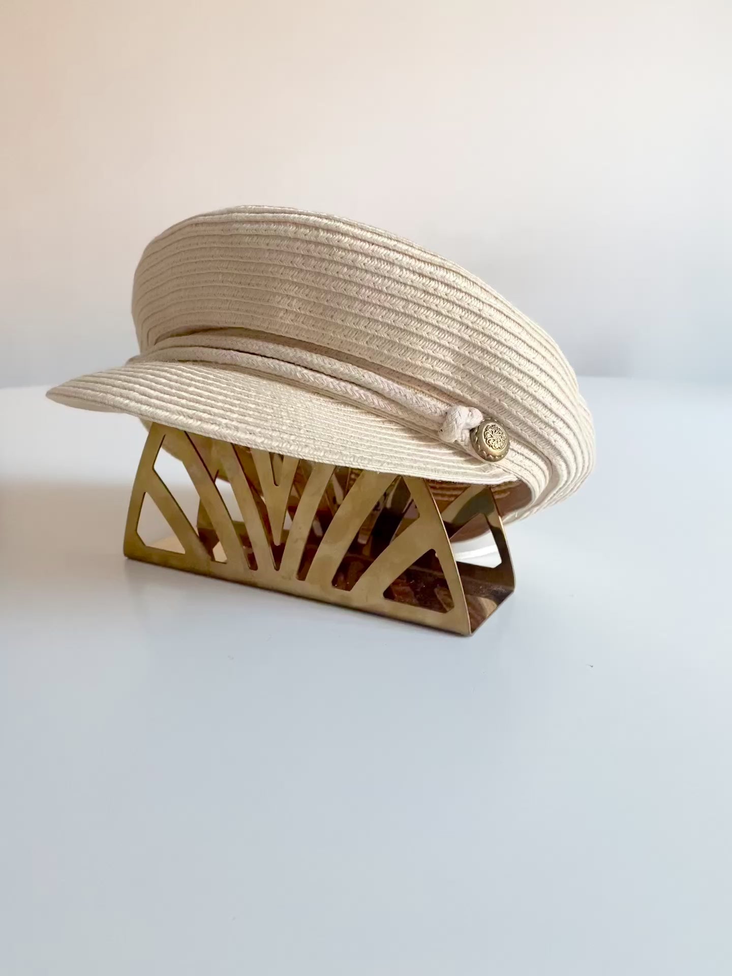 Bring a touch of retro edge to your wardrobe with our Cream Textured Baker Boy Cap. Crafted in woven fabric with a soft ribbed texture, this cap is finished with a classic rope detail and antique-style metallic buttons – giving it that timeless, vintage feel with a Moon Coven twist.