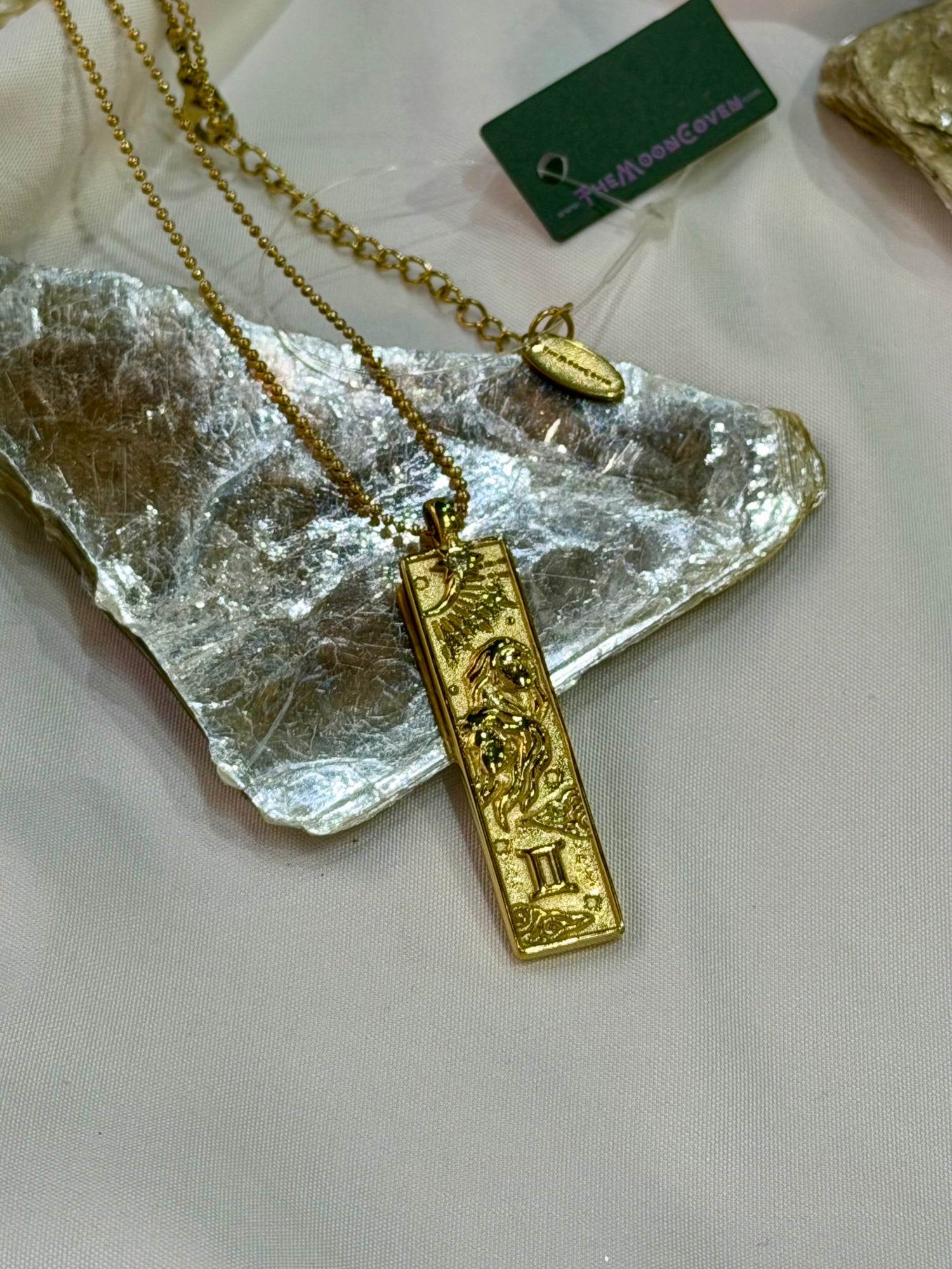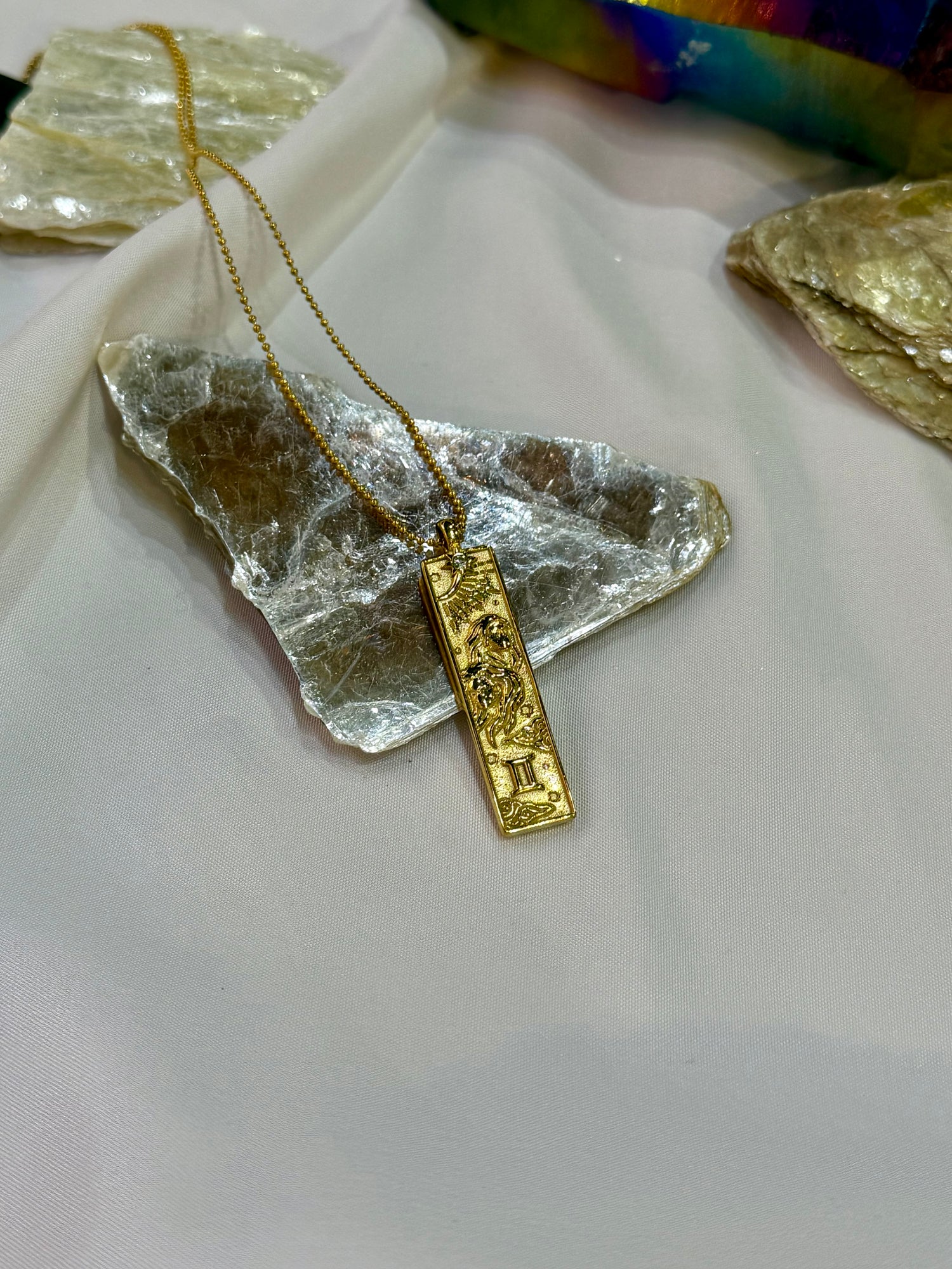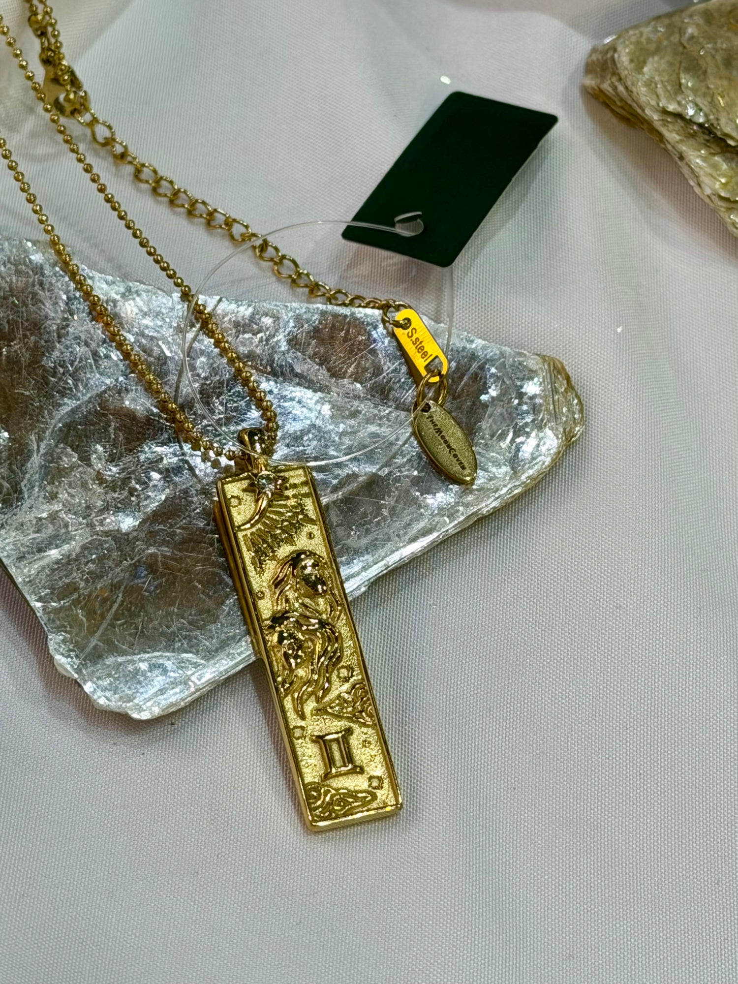 Gemini Zodiac Amulet Necklace Gold Waterproof Stainless Steel