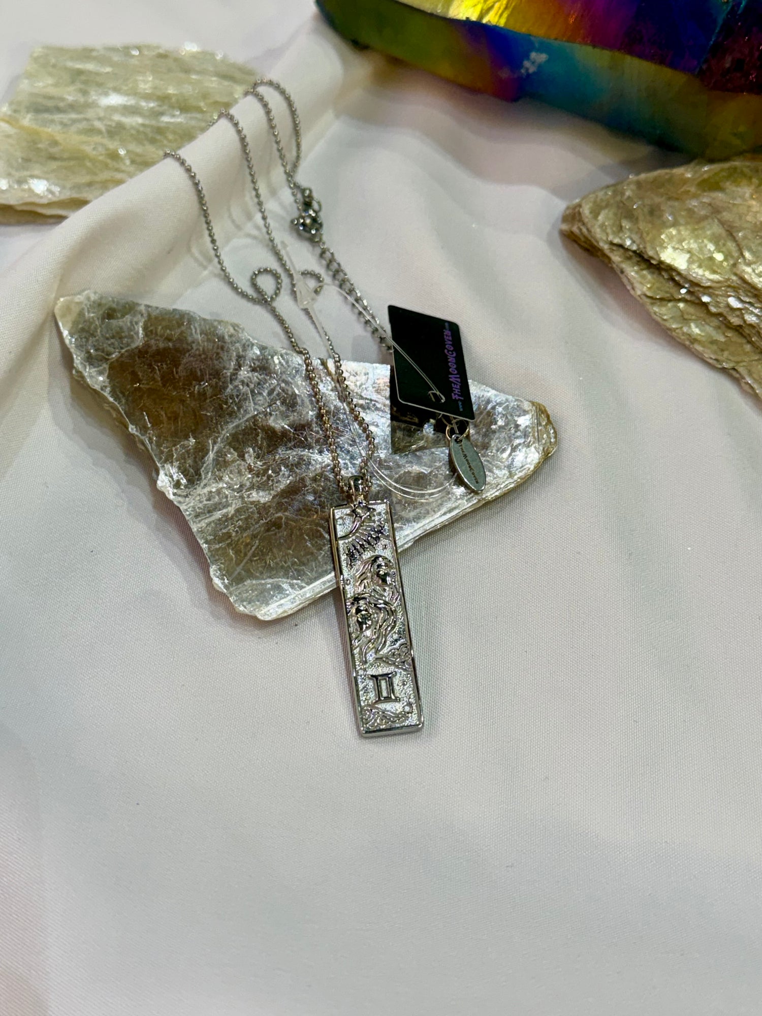 Gemini Zodiac Amulet Necklace Silver Waterproof Stainless Steel