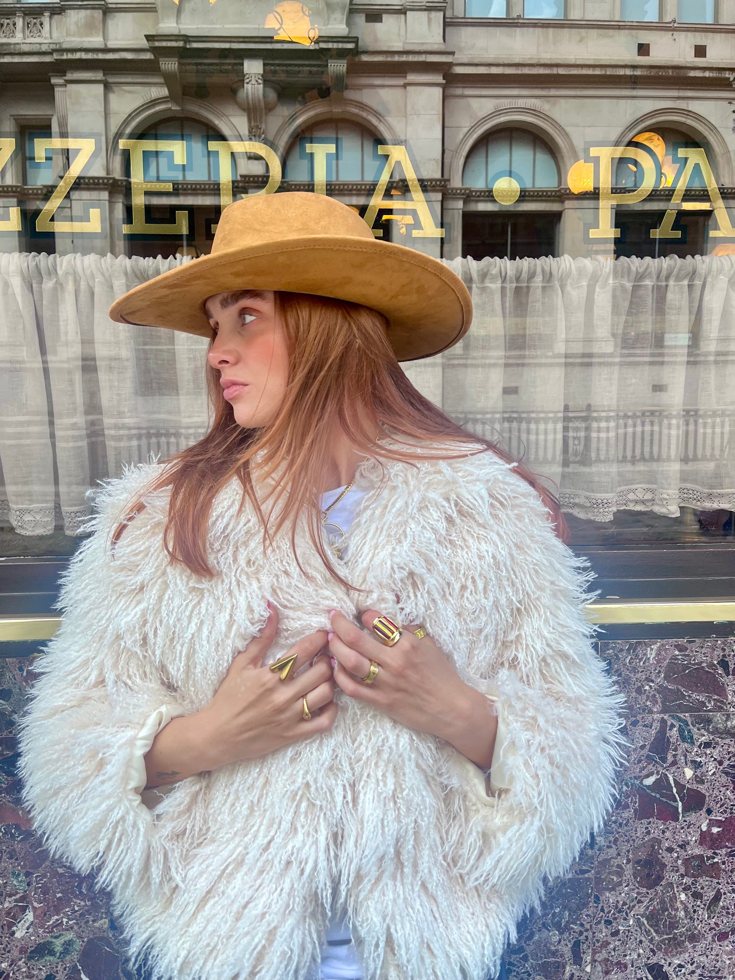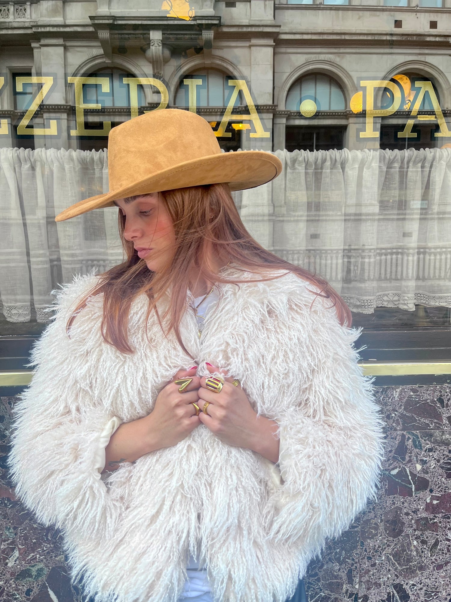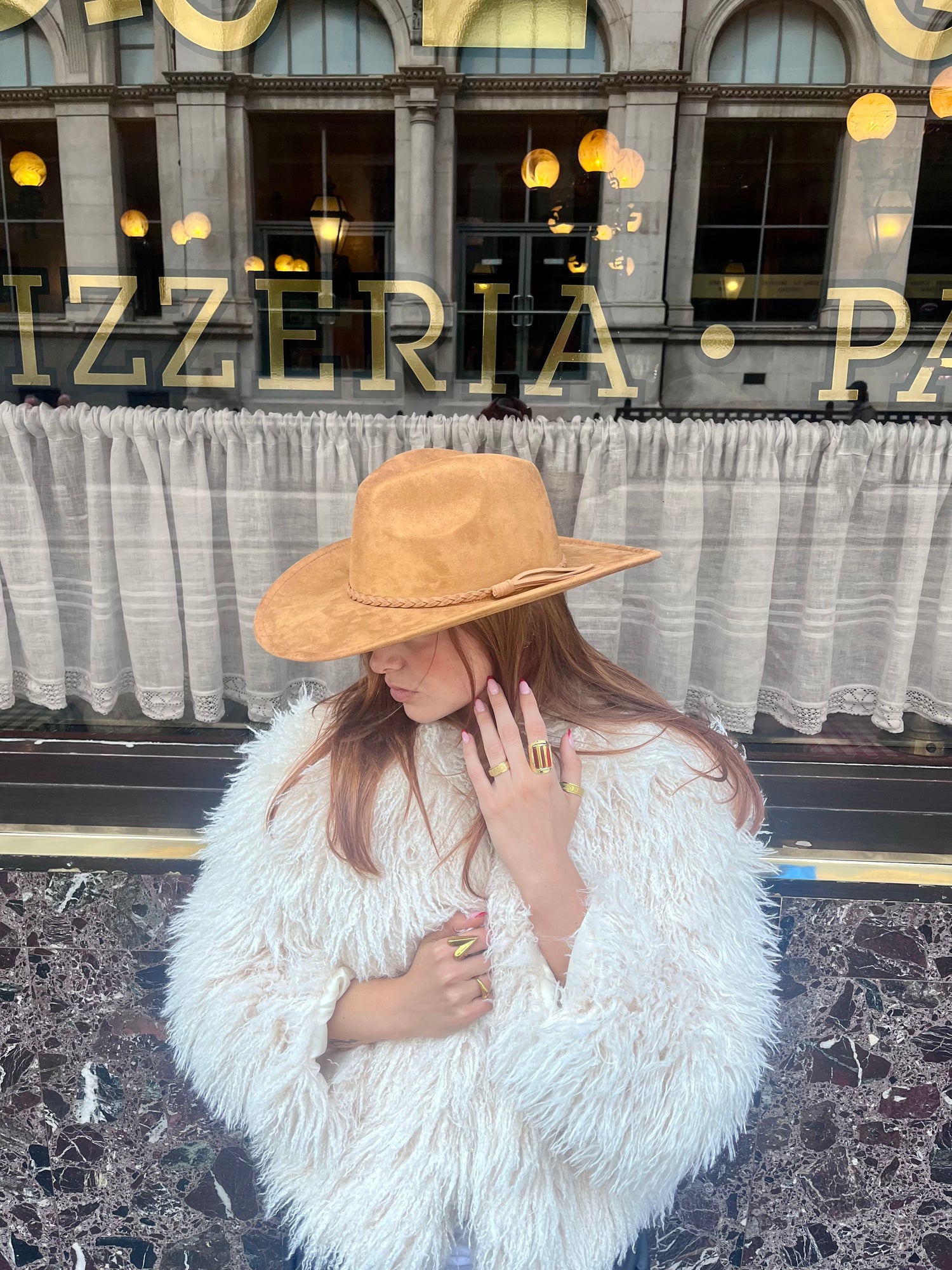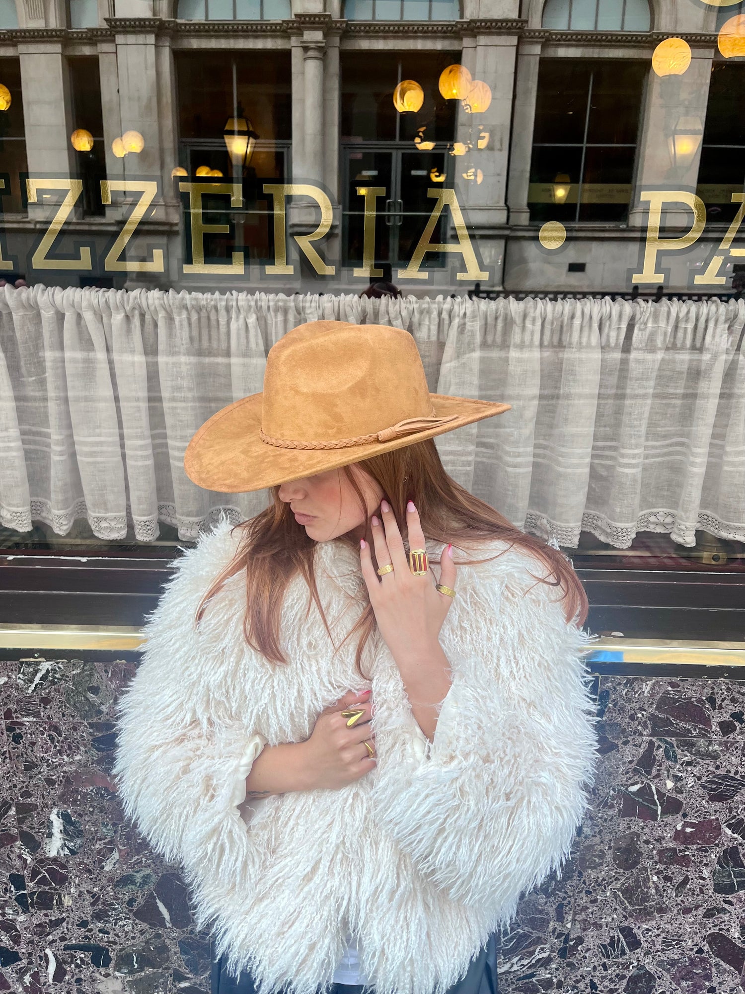 - Camel suede-finish cowboy hat