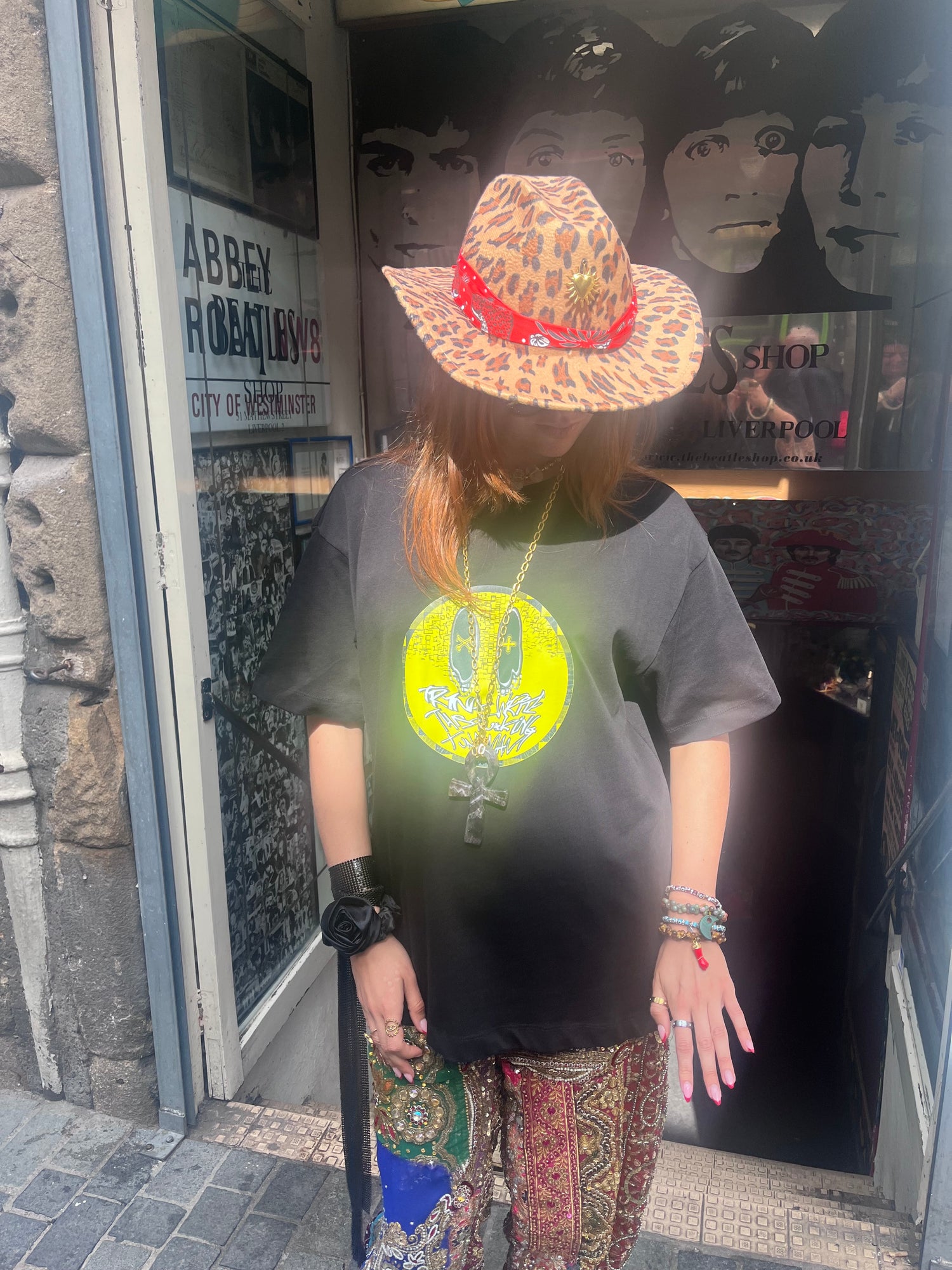 Turn heads with the Wild Heart Leopard Cowboy Hat, a bold statement piece blending western attitude with luxe detailing. Crafted in a fierce leopard print, this adjustable hat features a sacred heart gold stainless steel charm at its crown, symbolising strength and fire.