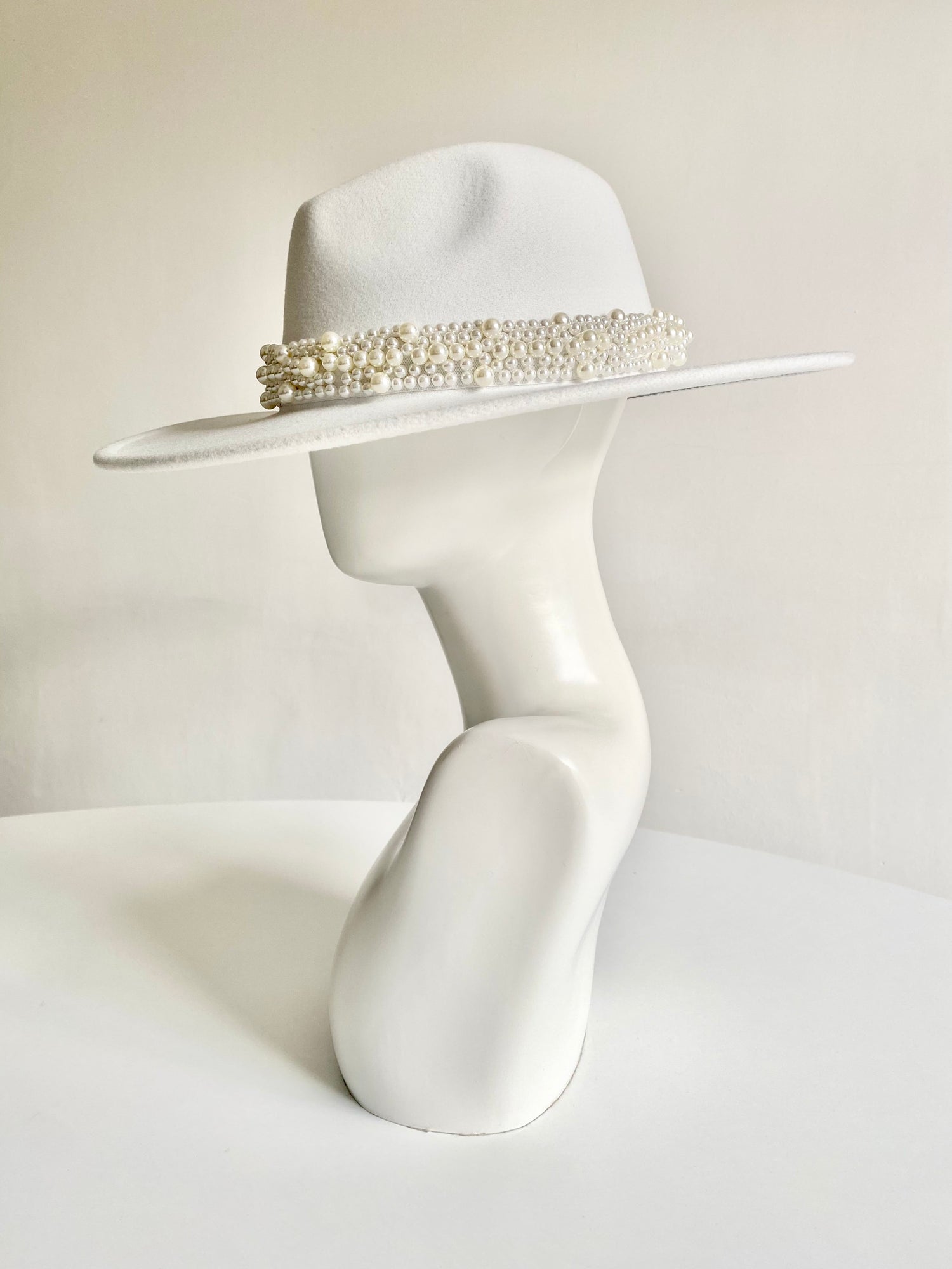 Celestial Bride Pearl Fedora – Adjustable White Hat